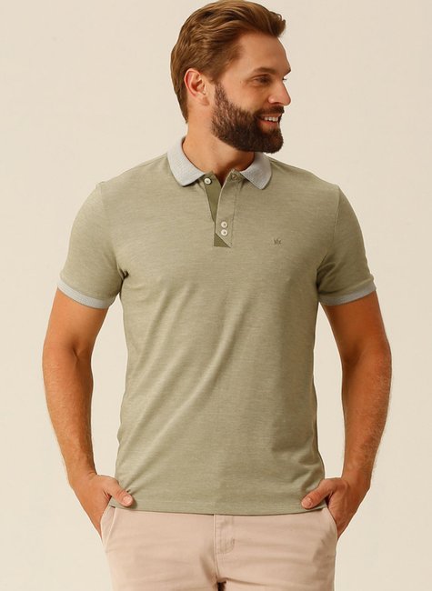Polo masculina confeccionada em malha binada.