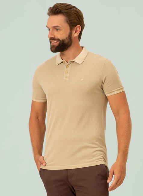 Camisa Polo Masculina Piquet Estonado Seeder Bege