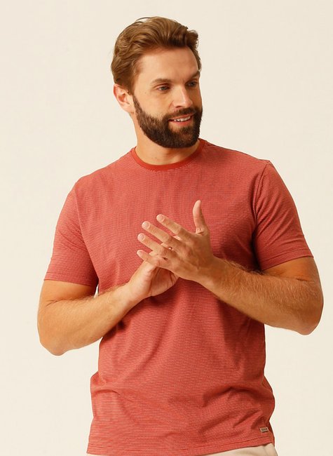 A Camiseta Masculina produzida em malha listrada dots oferece conforto e estilo.