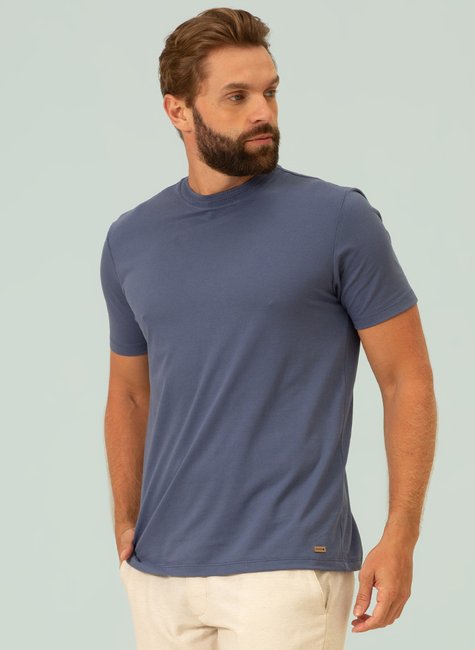 Camiseta masculina em malha maquinetada, com uma leve textura.
